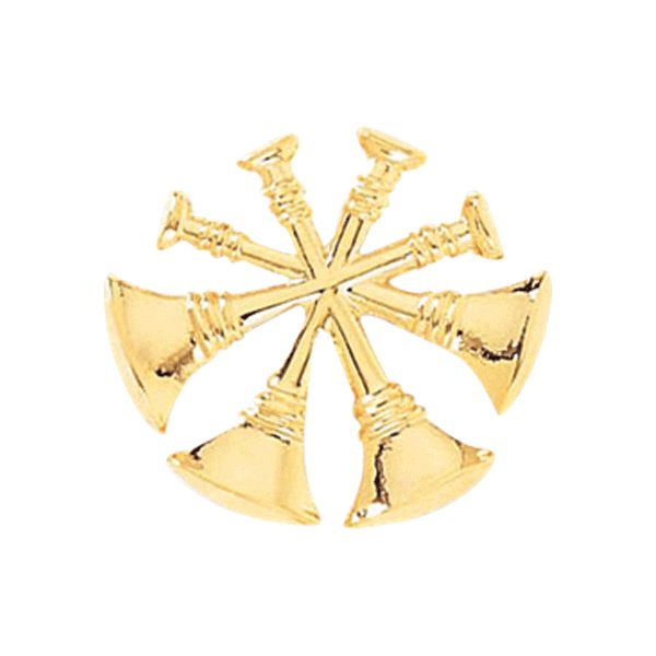 Exquisite polished 4 crossed horns. This piece will really POP in presentation on a uniform!