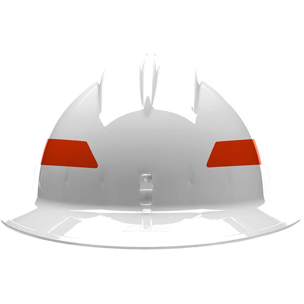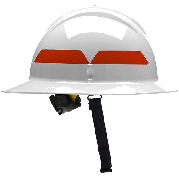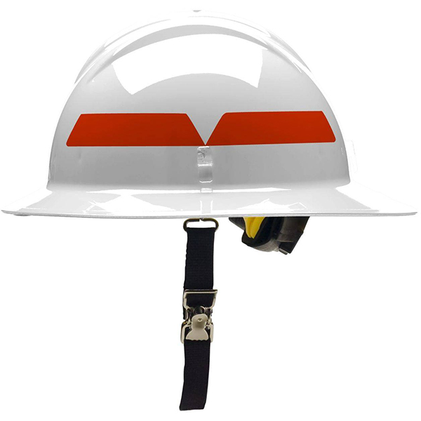 Wildland Fire Helmet Full-Brim Hat Style With Ratchet Suspension features a 6-point Sure-Lock ratchet headband (with a quick-turning sizing knob and six-position height adjuster) for customizing comfort and fit, Scotchlite reflective markings on the sides that do not burn, crack, or peel for enhancing visibility, under brim anti-glare strip for boosting a clear and unobstructed vision, goggle clips for preventing goggle from slipping or sliding off, and soft Nomex chinstrap for securing the helmet in place. It also meets performance standards and specifications under NFPA 1977, Standard on Protective Clothing and Equipment for Wildland Fire Fighting, and ANSI/ISEA Z89.1 Type 1 Class E & G.
